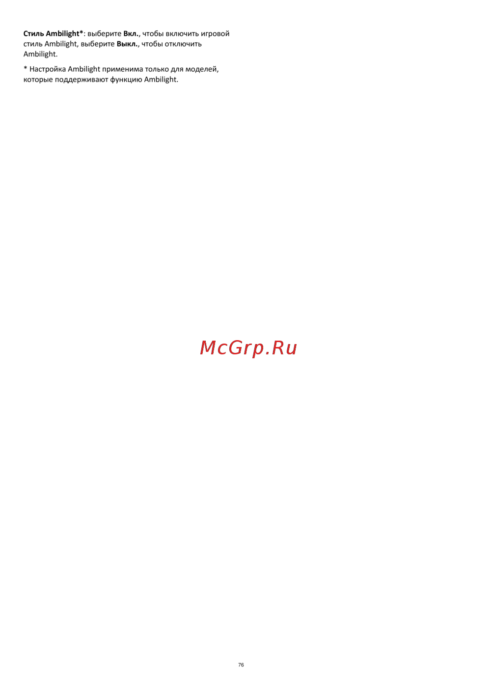 * Настройка Ambilight применима только для моделей,