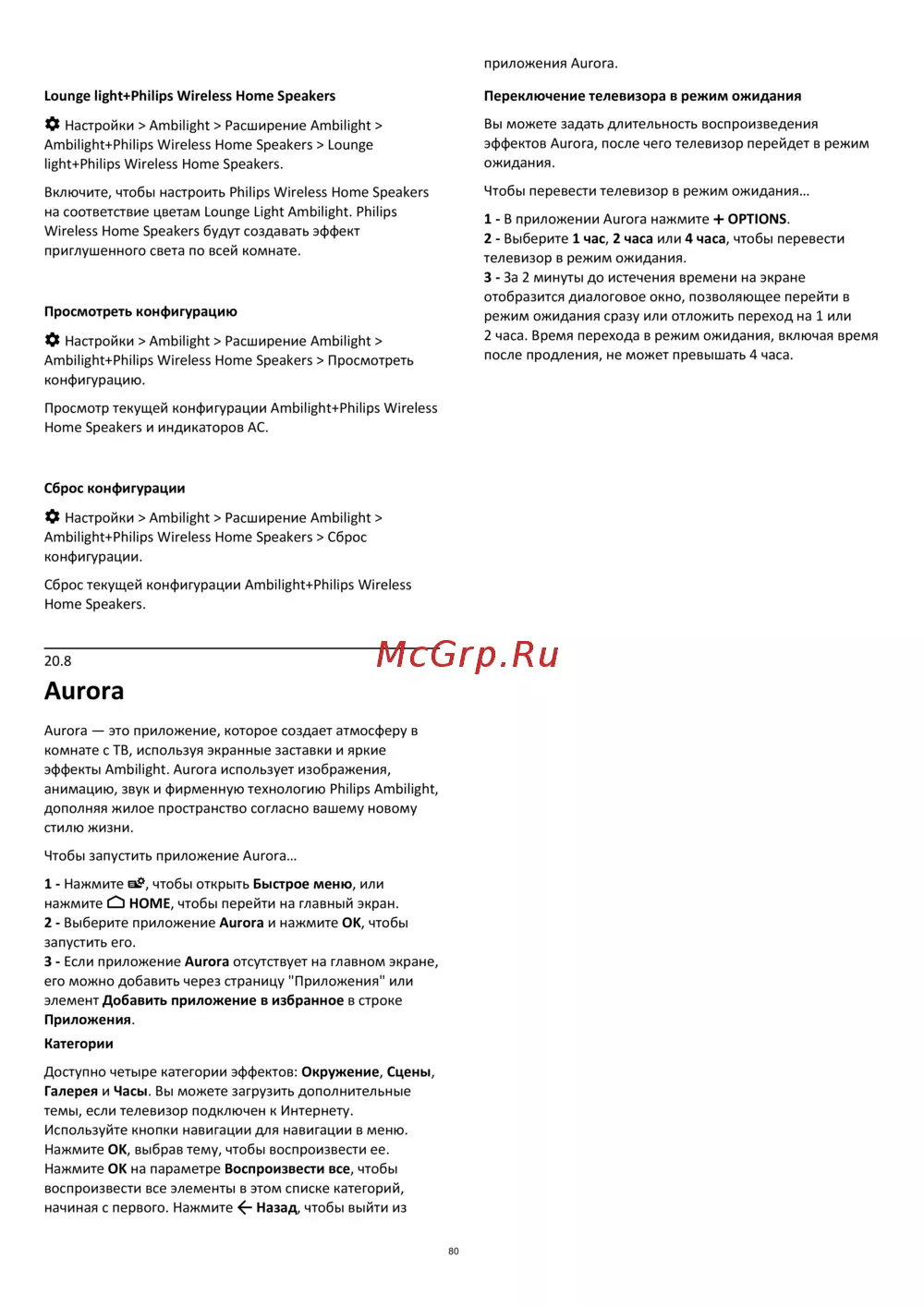 Сброс текущей конфигурации Ambilight+Philips Wireless