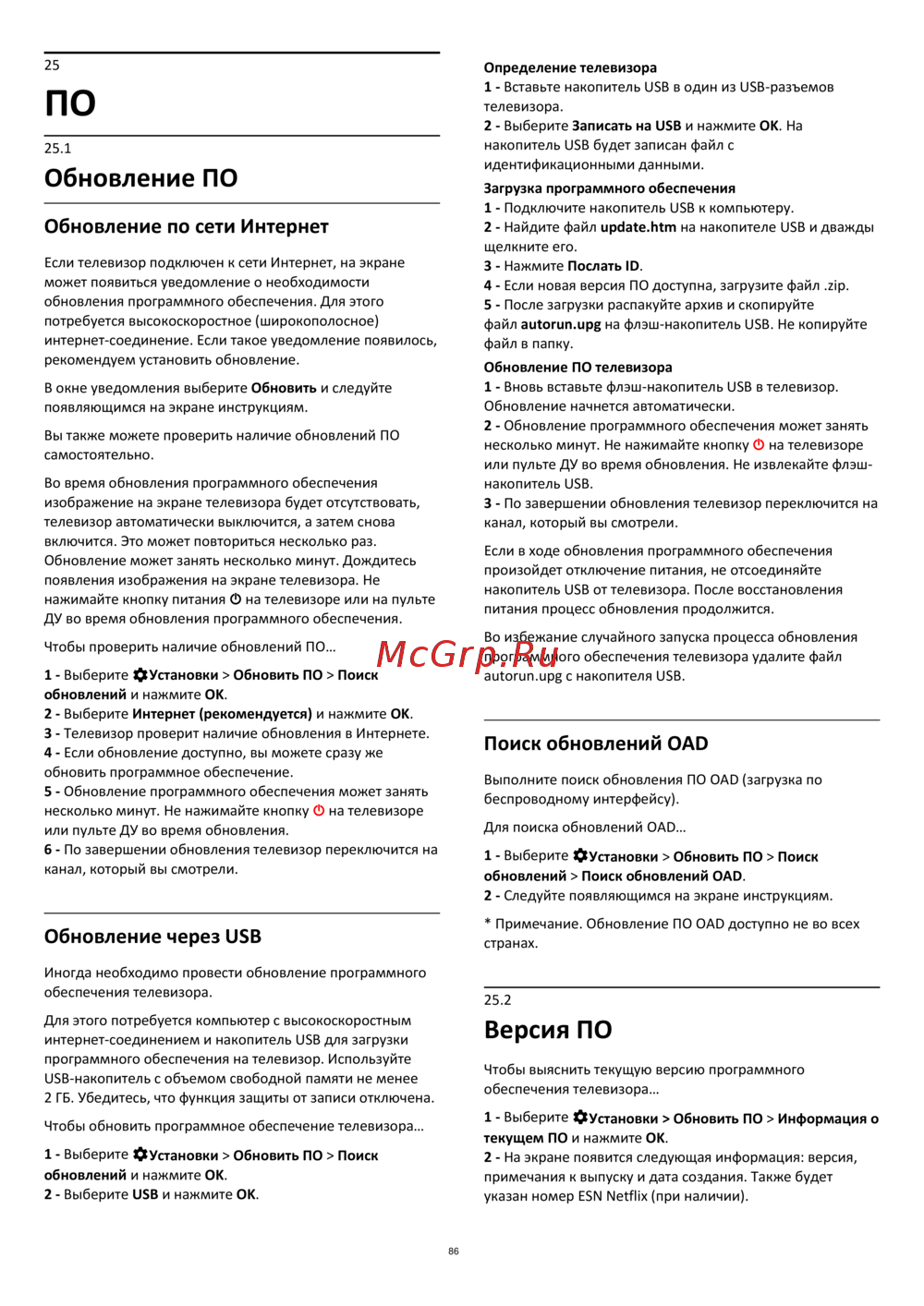 - Обновление по сети интернет p.86