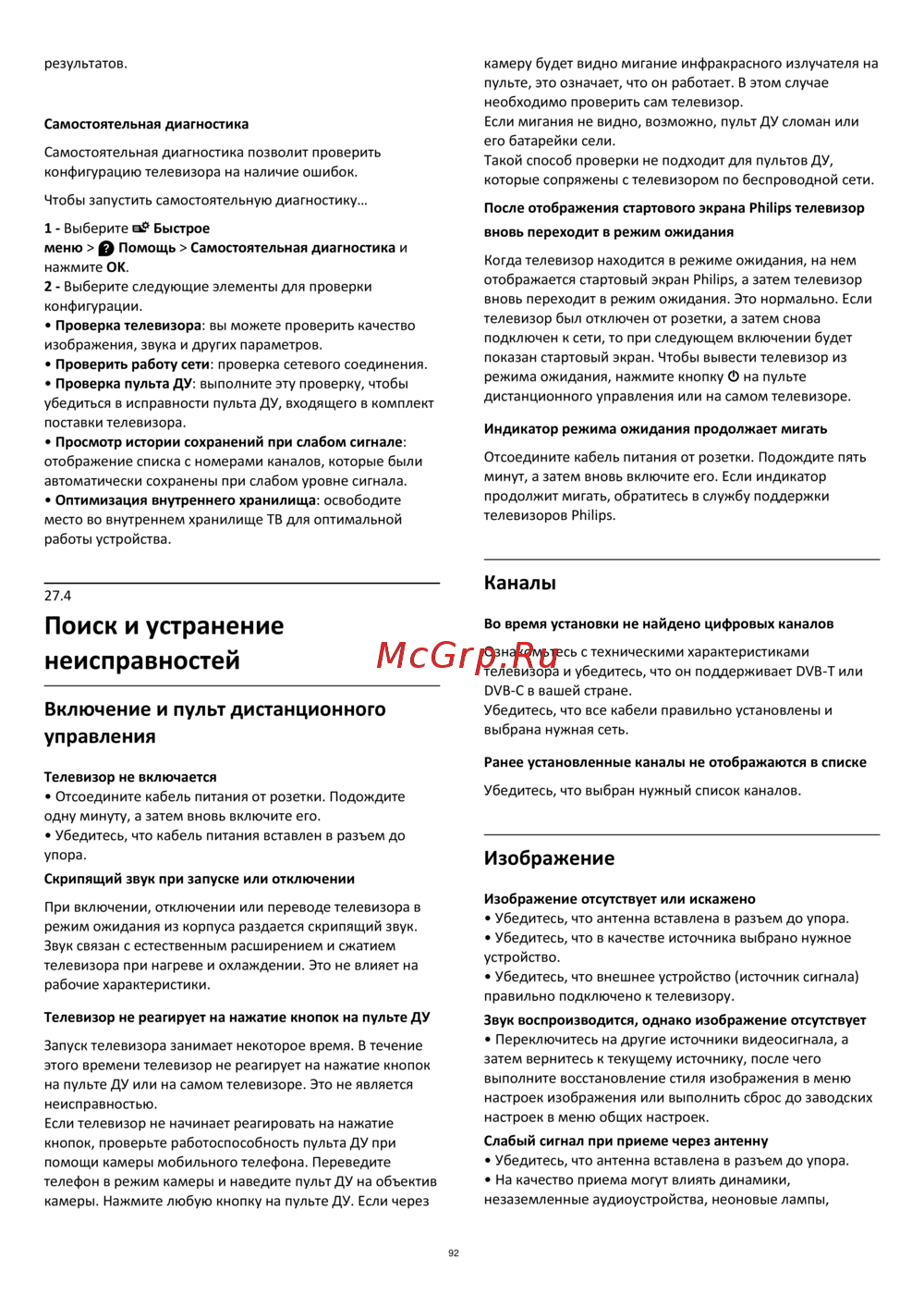 Philips 50PUS8507/60 [92/105] Поиск и устранение неисправностей