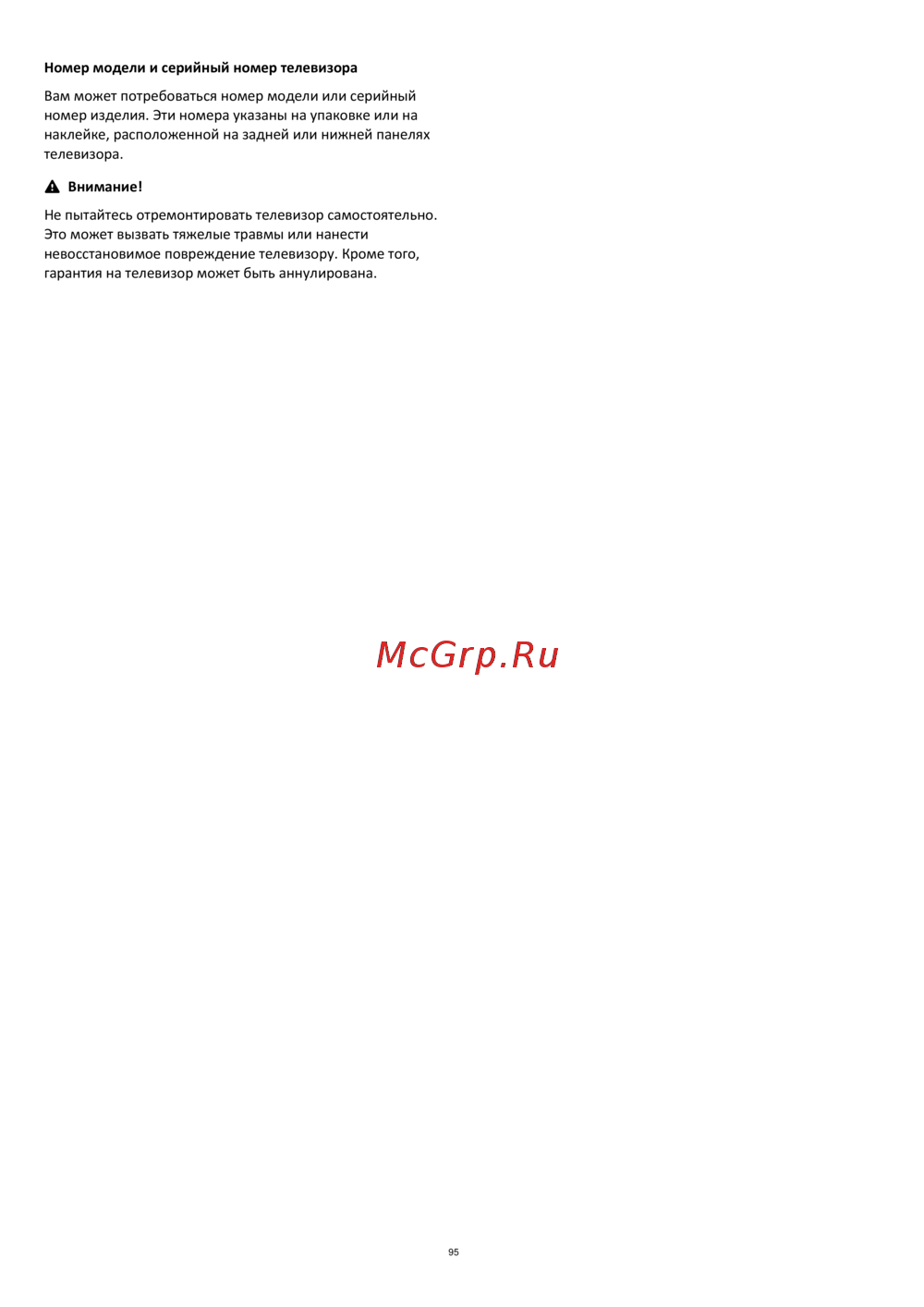 гарантия на телевизор может быть аннулирована.
