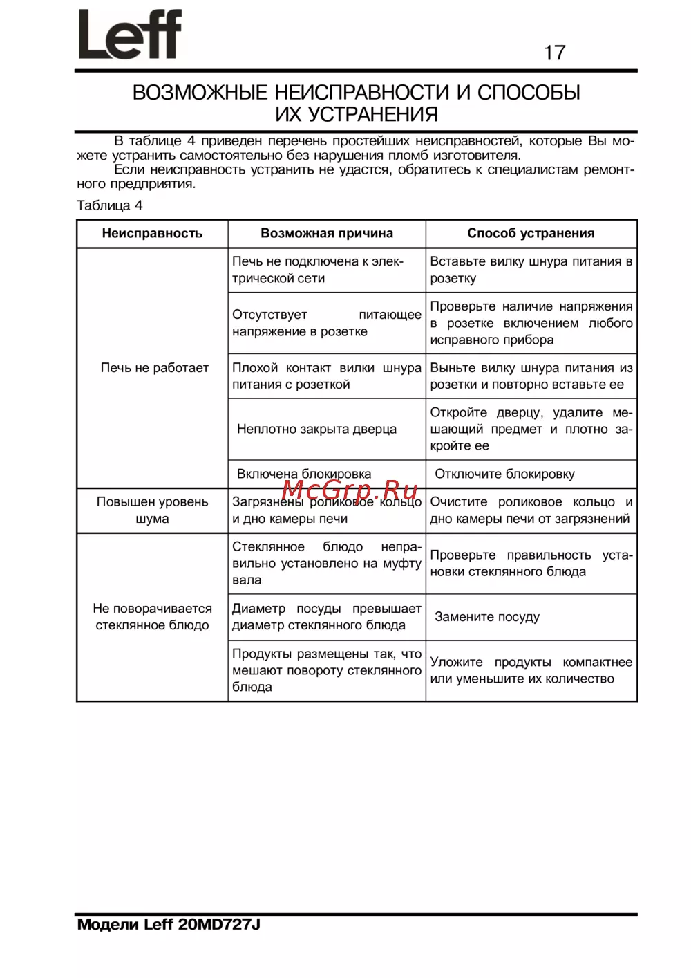 жете устранить самостоятельно без нарушения пломб изготовителя.