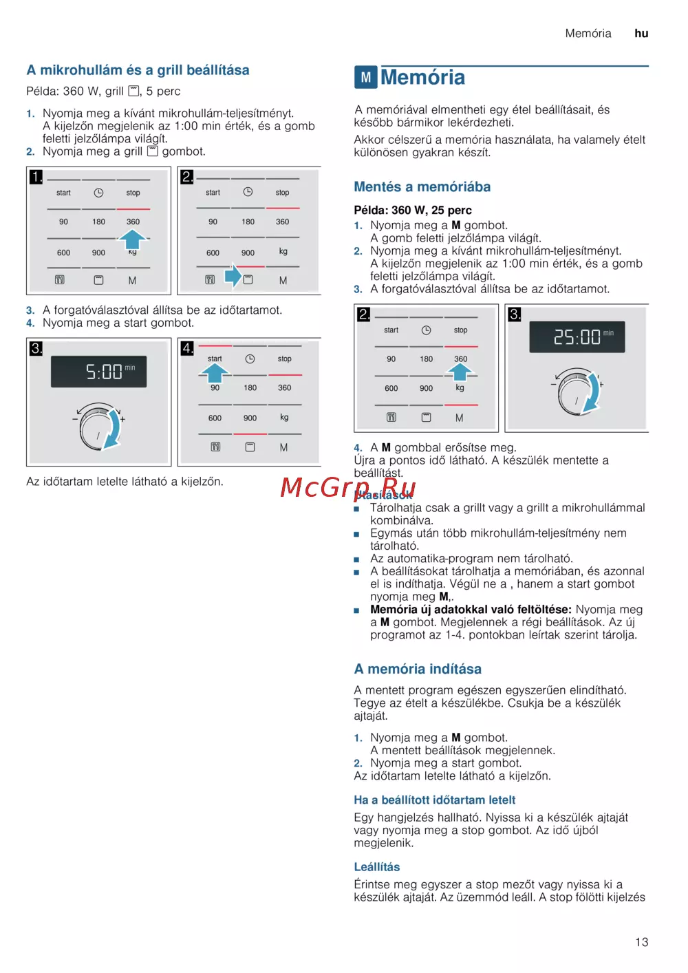 ■ Tárolhatja csak a grillt vagy a grillt a mikrohullámmal
