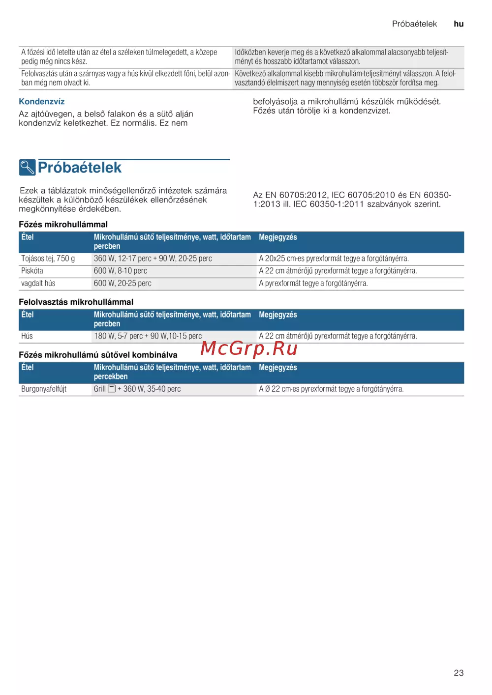 Étel Mikrohullámú sütő teljesítménye, watt, időtartam