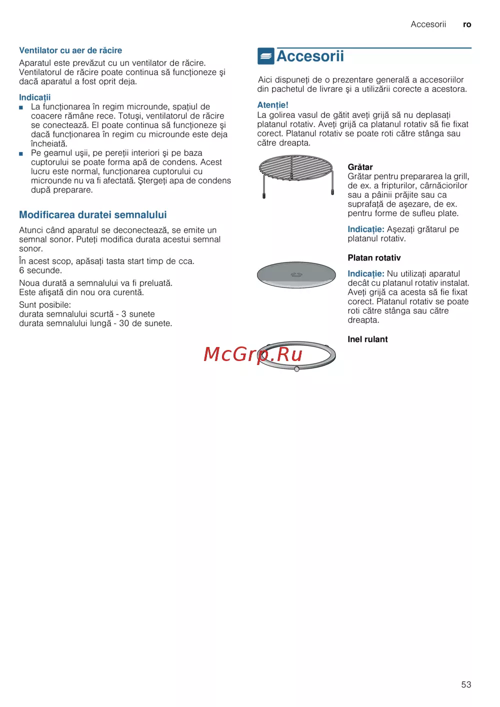 - Setarea regimului cu microunde p.55