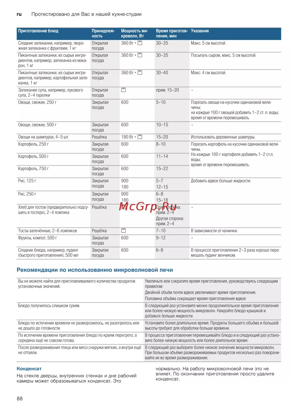 Bosch FEM553MB0 [88/92] Рекомендации по использованию микроволновой печи