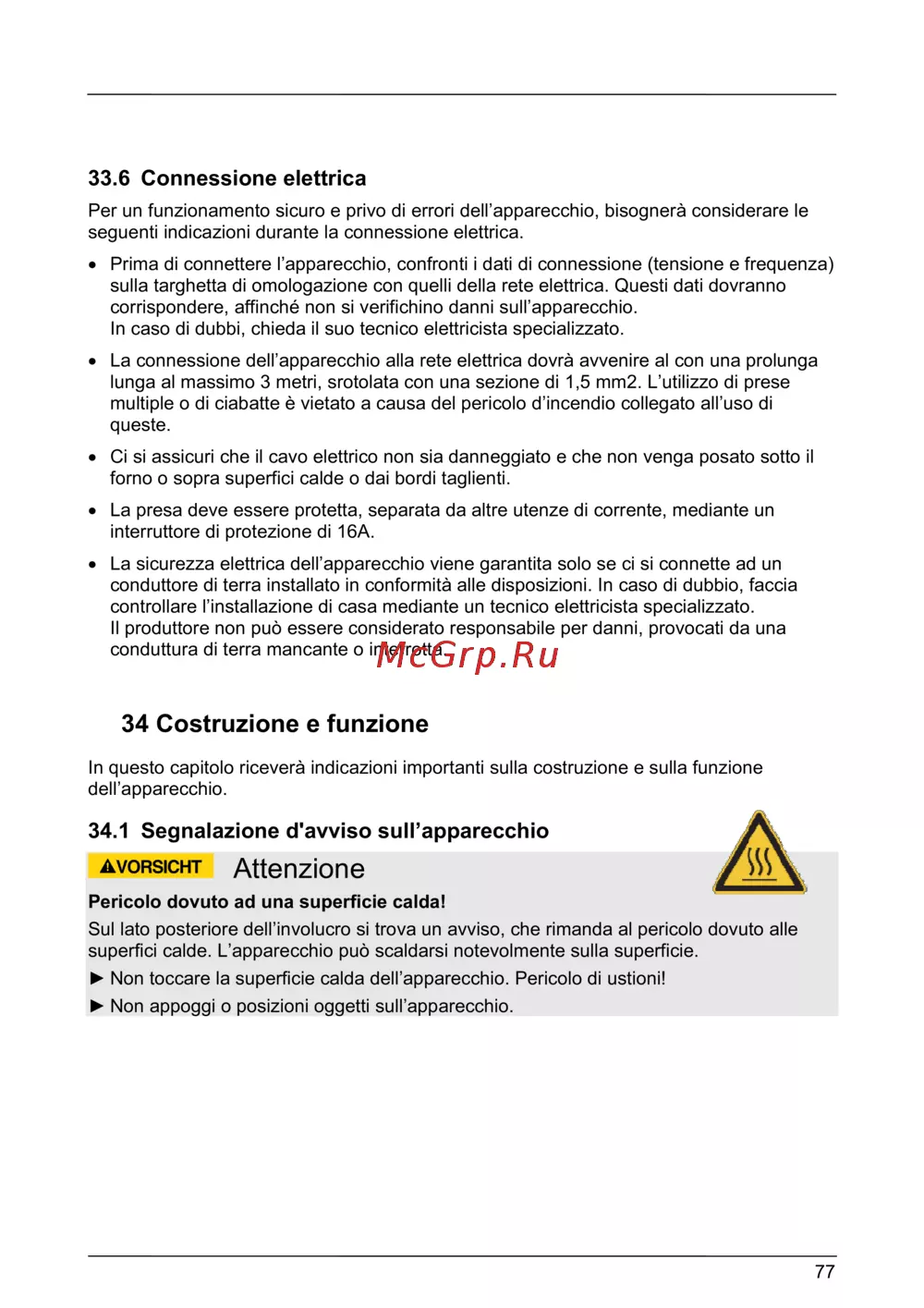 ► Non toccare la superficie calda dell’apparecchio. Pericolo di ustioni!