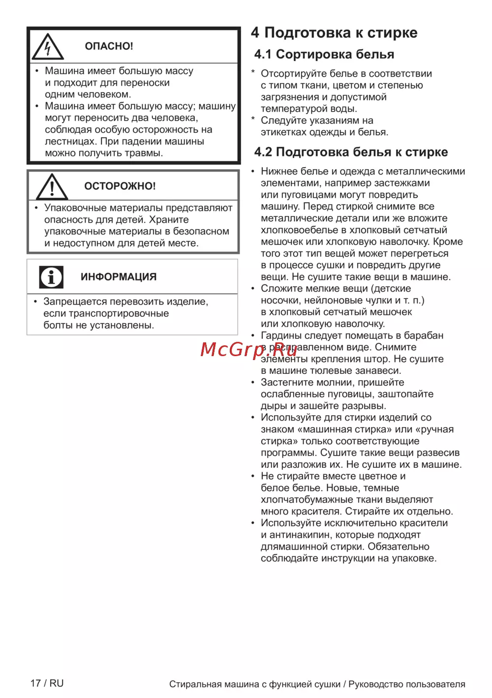 4 Подготовка к стирке