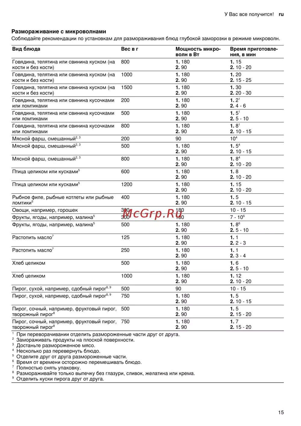 - Размораживание с микроволнами p.15