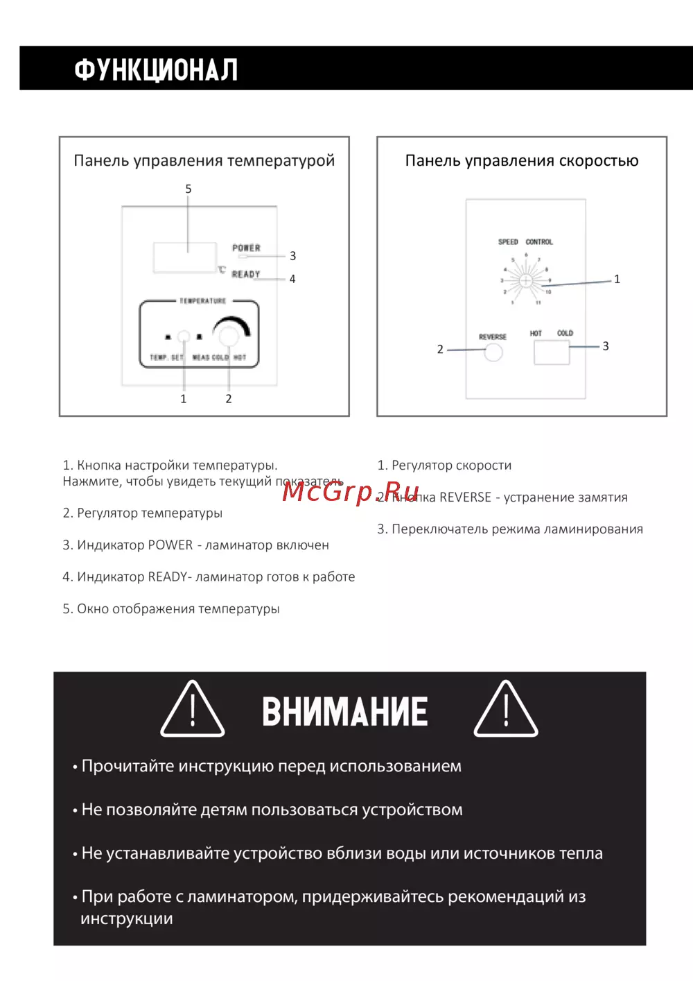 - При работе с ламинатором придерживайтесь рекомендаций из инструкции p.2