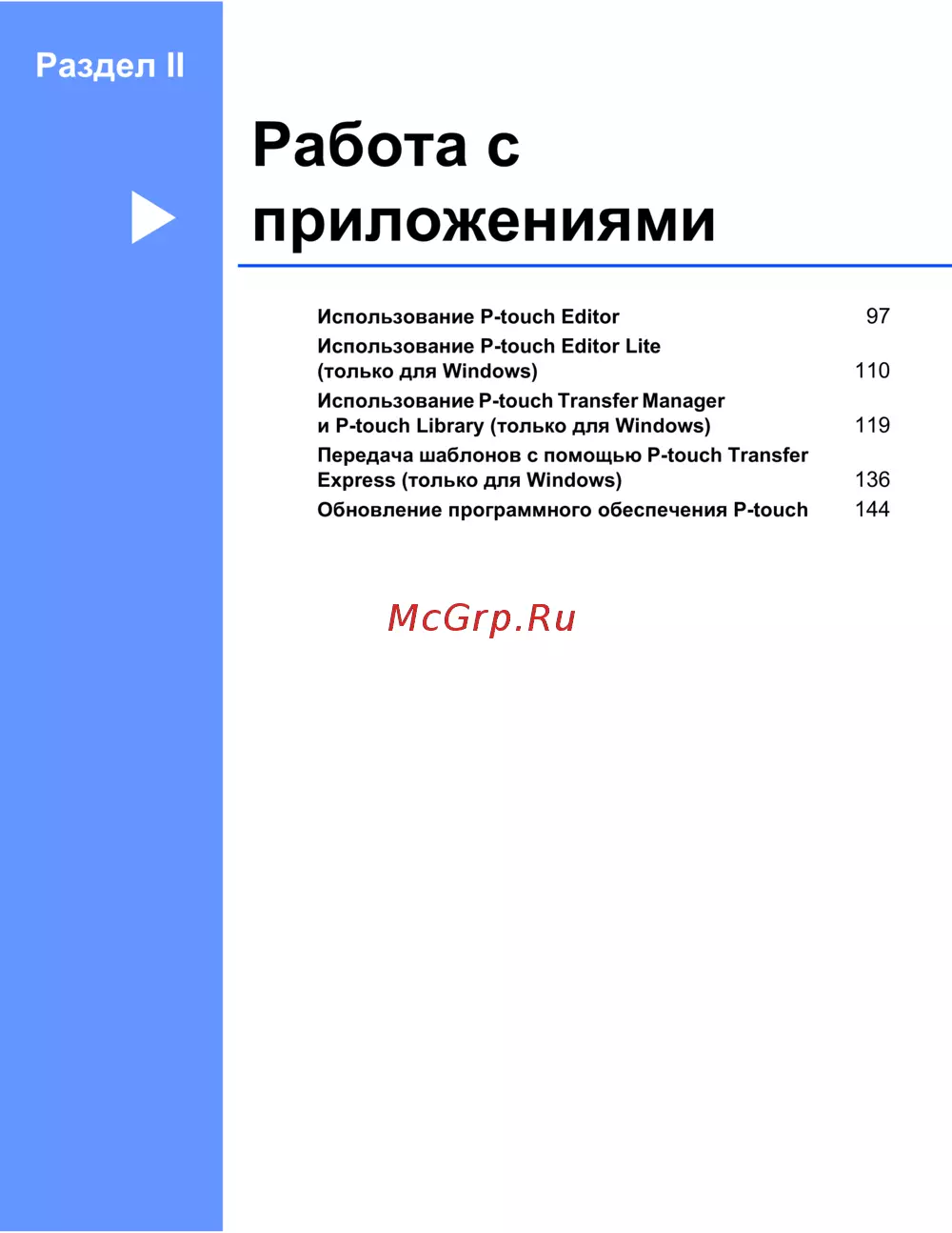 - Использование p touch transfer manager и p touch library только для windows 119 p.8