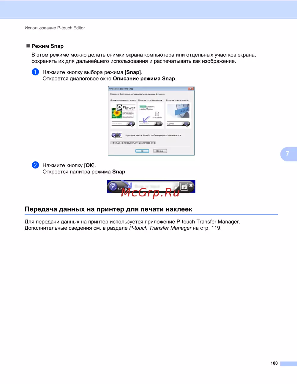 - Использование p touch transfer manager и p touch library только для windows 119 p.8