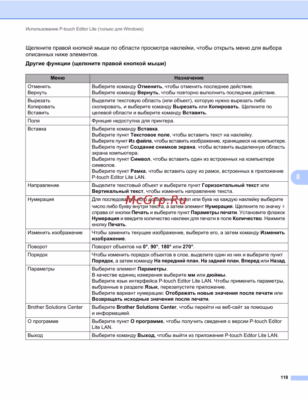 - Использование p touch transfer manager и p touch library только для windows 119 p.8