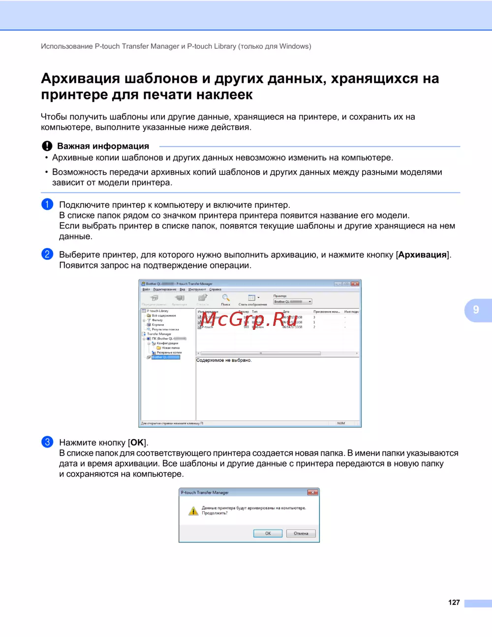 - Использование p touch transfer manager и p touch library только для windows 119 p.8