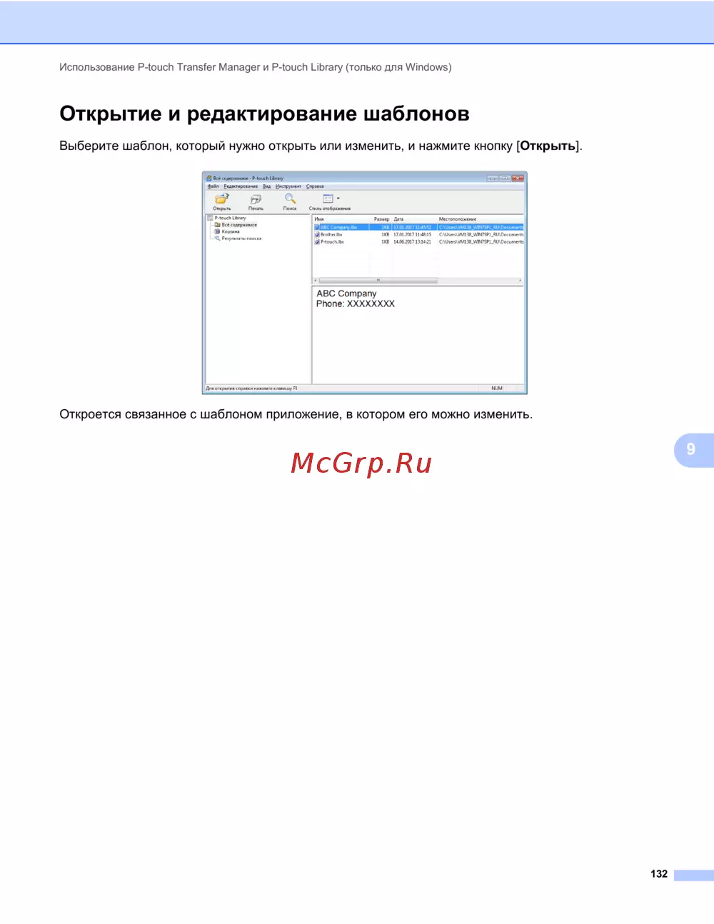 Использование P-touch Transfer Manager и P-touch Library (только для Windows)