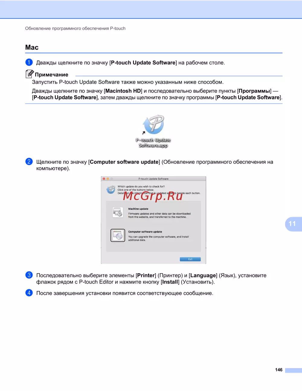 [P-touch Update Software], затем дважды щелкните по значку программы [P-touch Update Software].