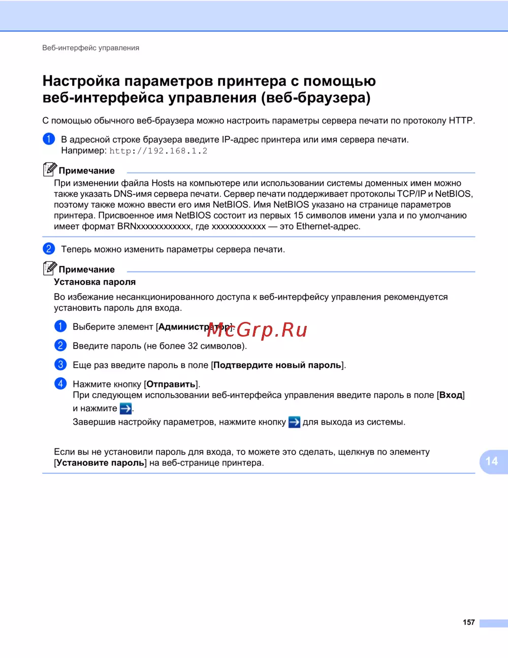 - Настройка параметров принтера с помощью веб интерфейса управления веб браузера p.167