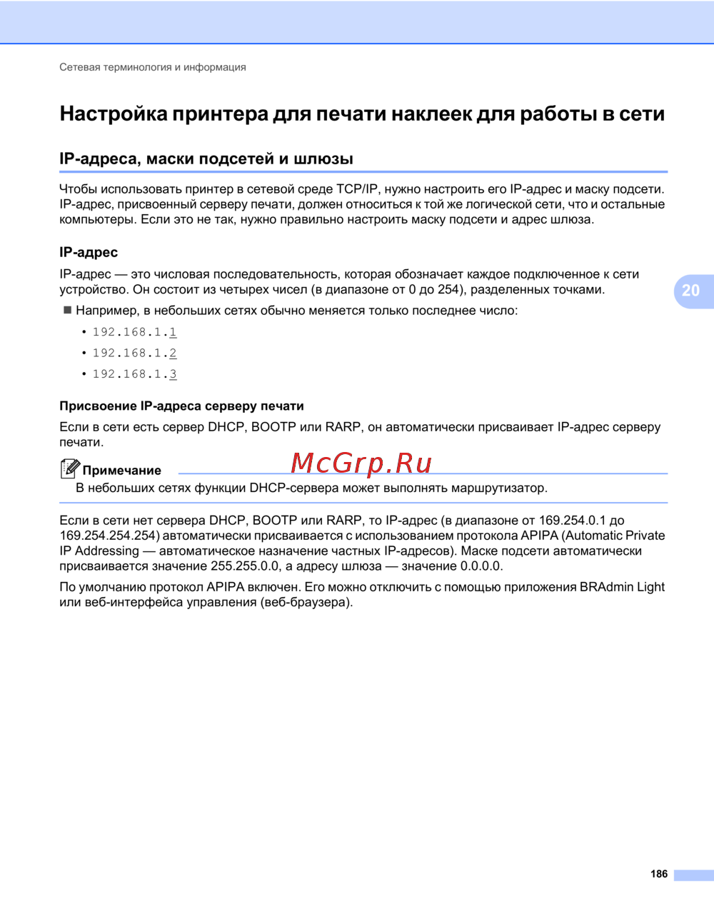 По умолчанию протокол APIPA включен. Его можно отключить с помощью приложения BRAdmin Light