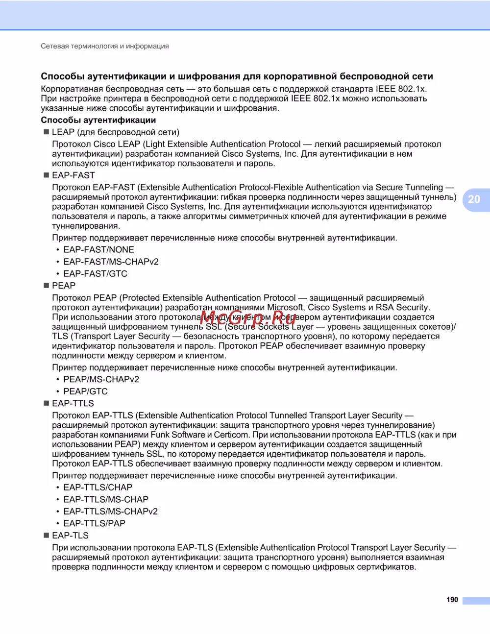 Brother QL-810W (QL810WUA1) [200/209] Способы аутентификации и шифрования для корпоративной беспроводной сети