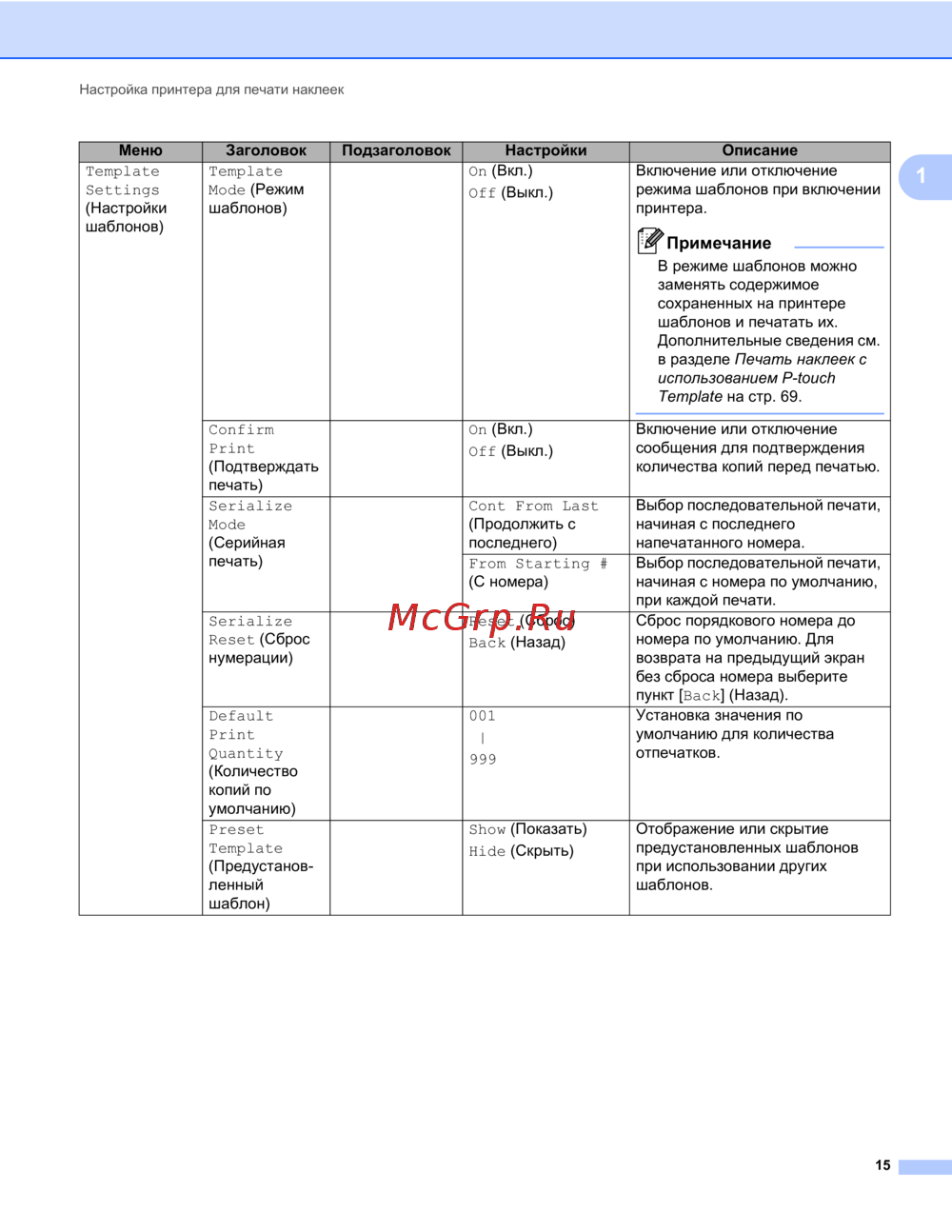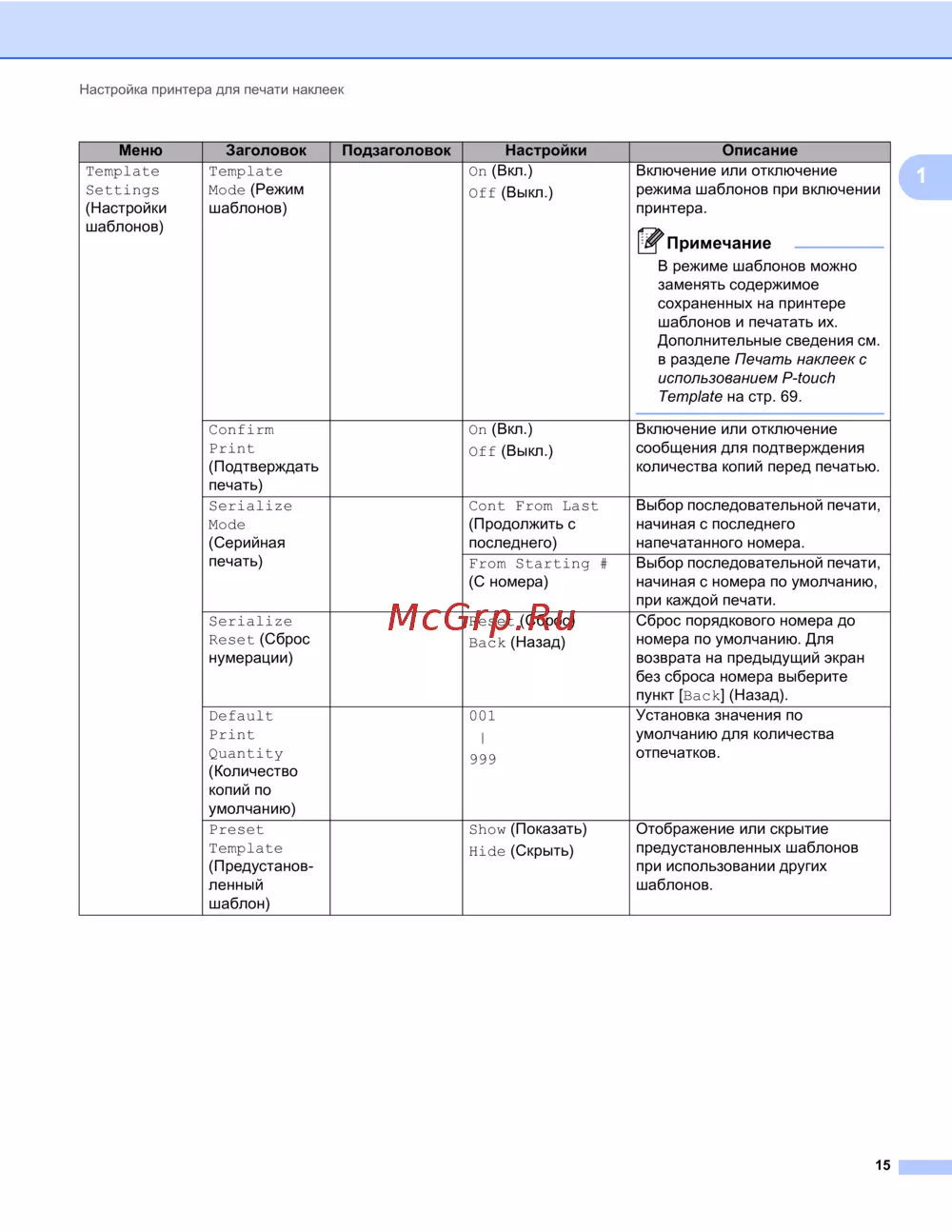 - Печать наклеек с использованием p touch template 69 p.7