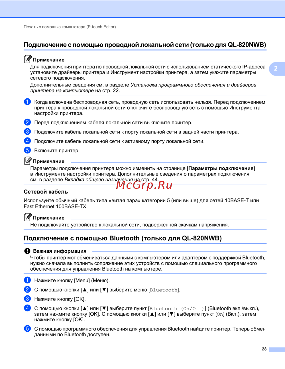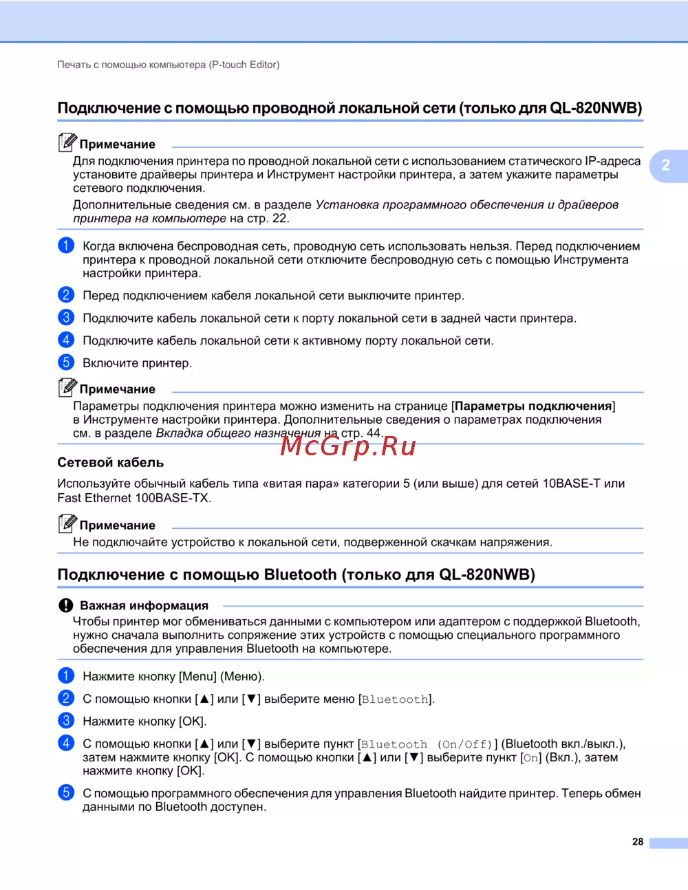 Подключение с помощью проводной локальной сети (только для QL-820NWB)2
