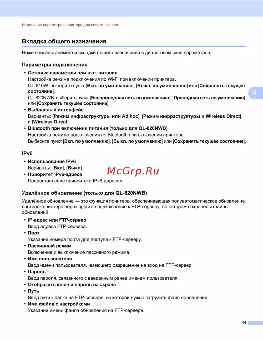 ![Brother QL-810W (QL810WUA1) [54/209] Удалённое обновление только для ql 820nwb](/views2/2020550/page54/bg36.png)