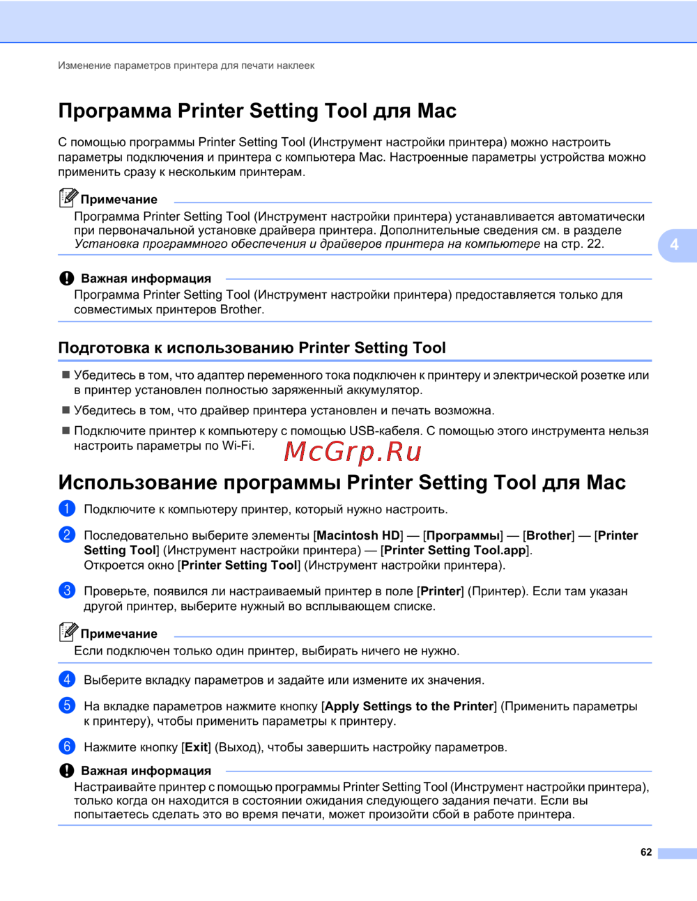 Brother QL-810W (QL810WUA1) [72/209] Программа printer setting tool для mac