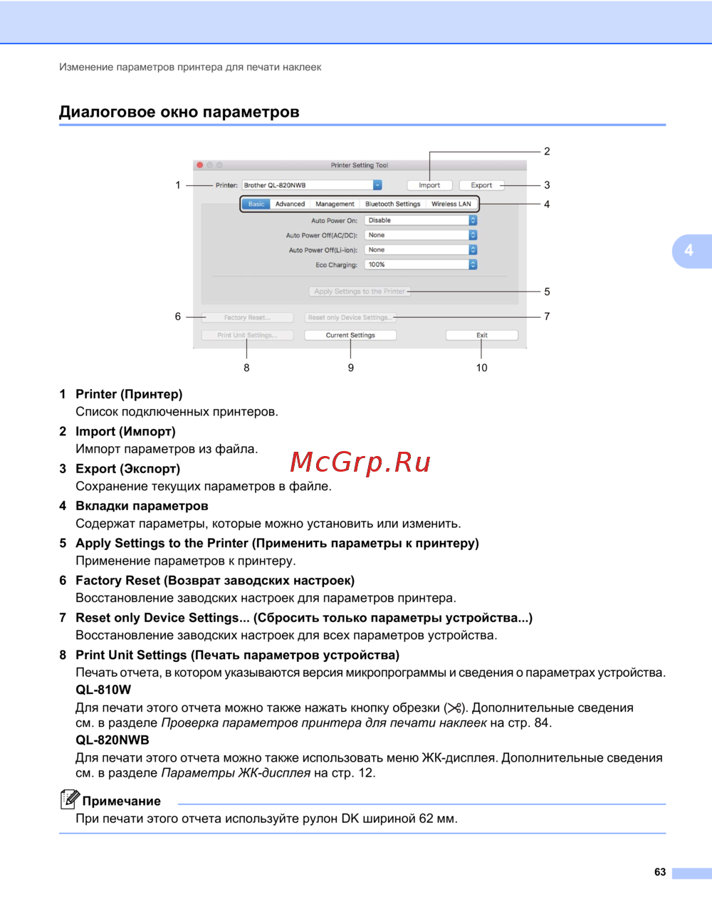 Brother QL-810W (QL810WUA1) [73/209] Диалоговое окно параметров