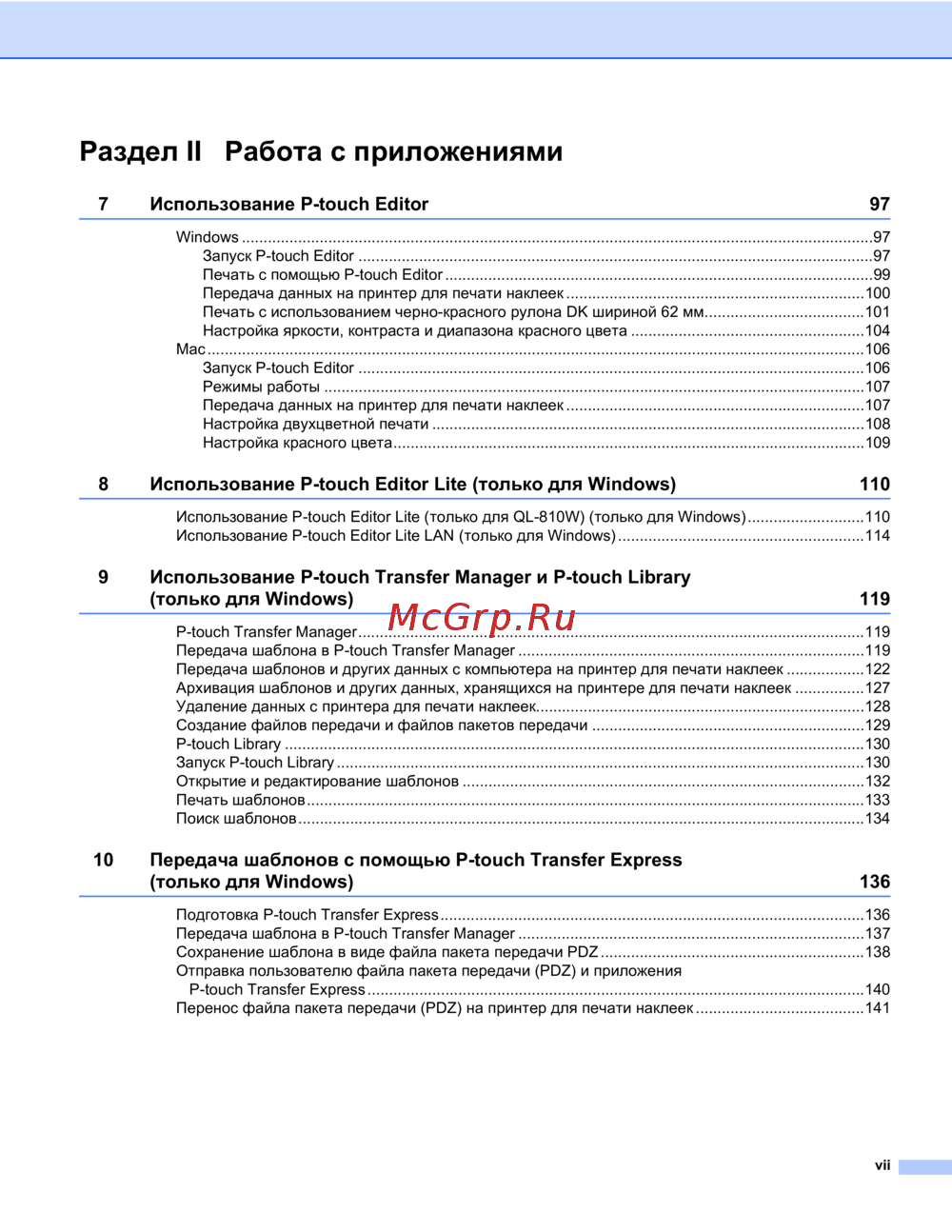 Brother QL-810W (QL810WUA1) [8/209] Раздел ii работа с приложениями