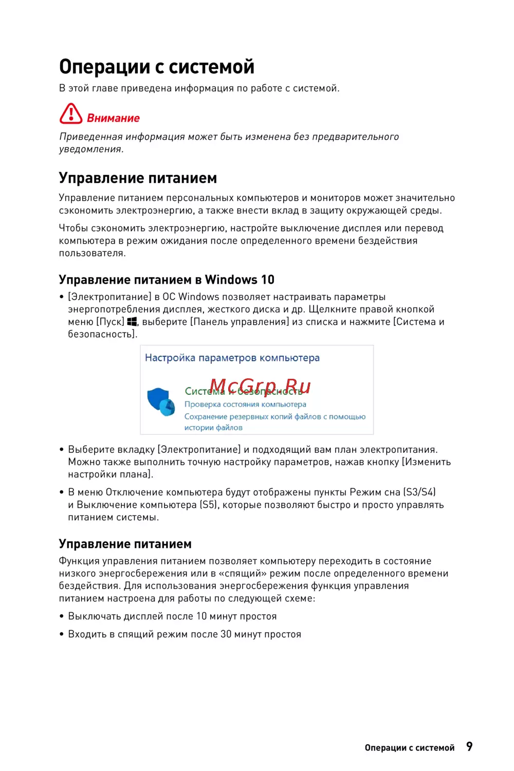 ∙ [Электропитание] в ОС Windows позволяет настраивать параметры