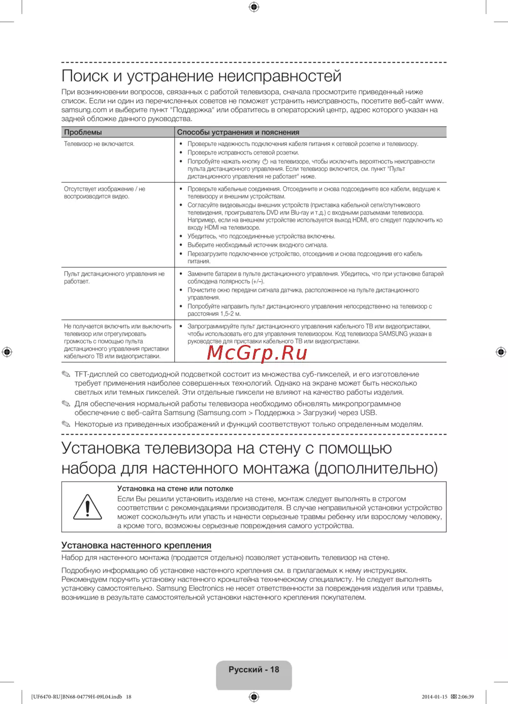 Samsung UE55F6500AB [18/24] Поиск и устранение неисправностей и прочая информация