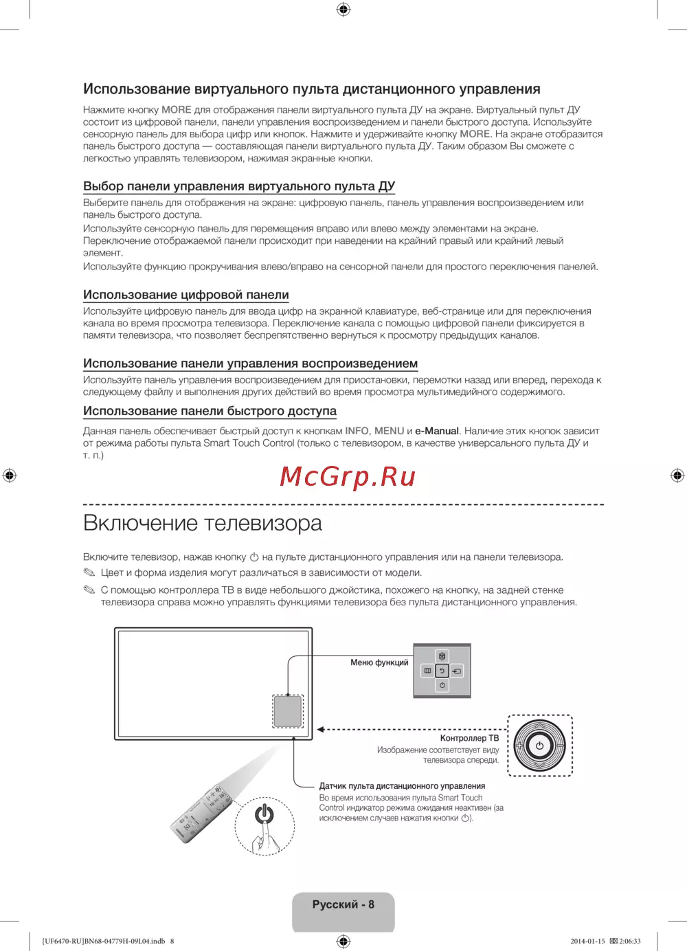 - Использование виртуального пульта дистанционного управления p.8