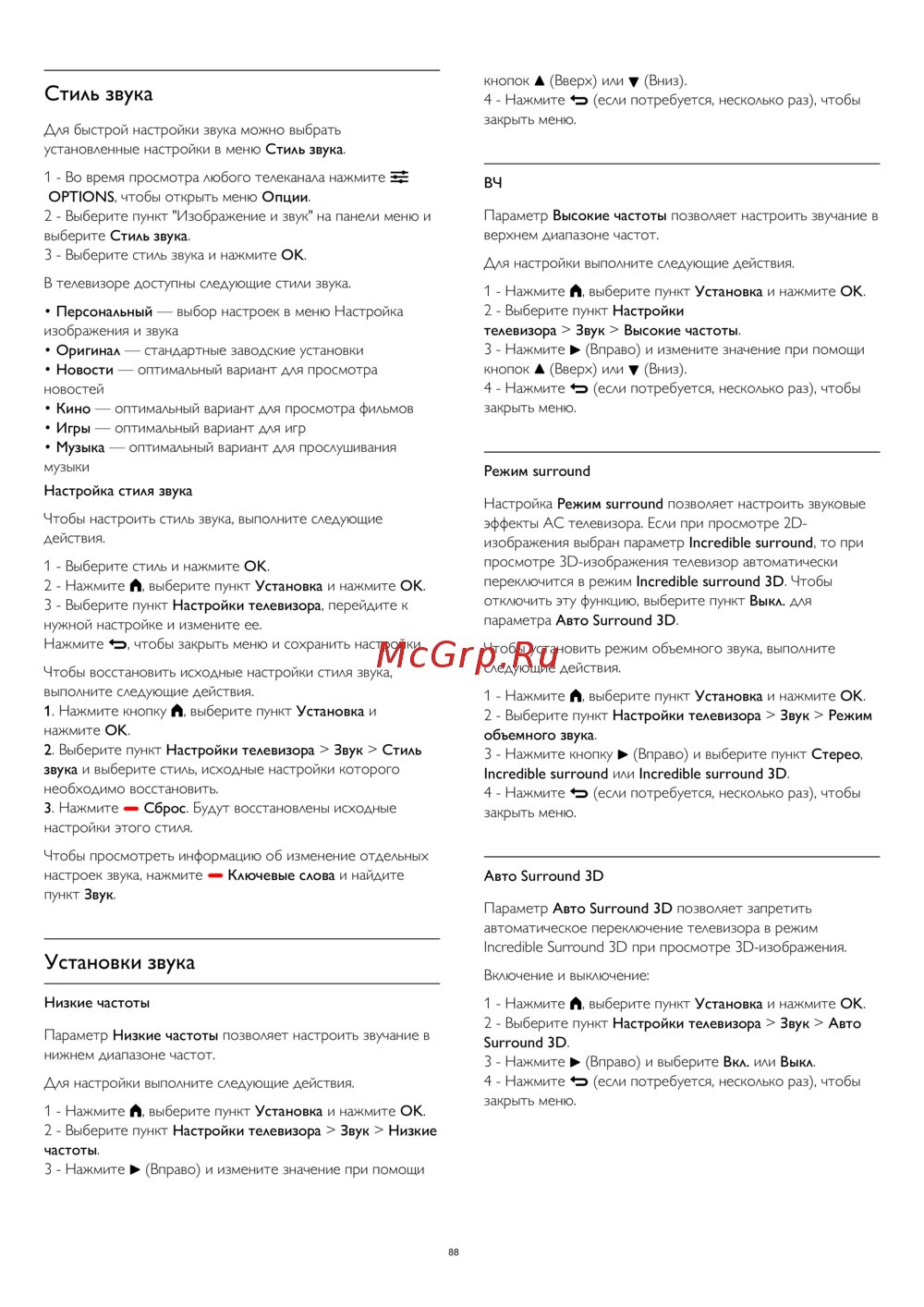 Philips 42PFS7309/60 — как настроить стиль звука на телевизоре: пошаговое руководство [88/118]