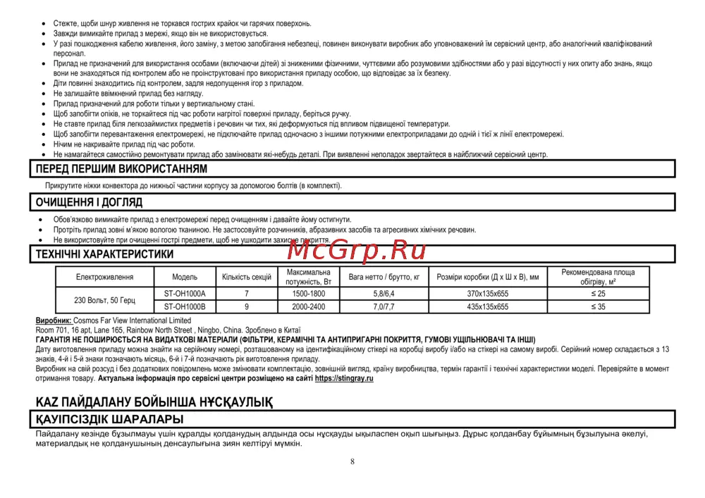 отримання товару. Актуальна інформація про сервісні центри розміщено на сайті https://stingray.ru