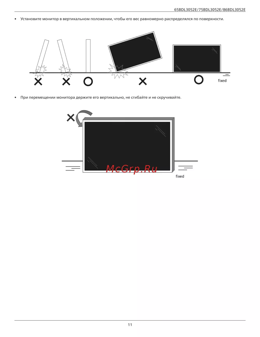 • Установите монитор в вертикальном положении, чтобы его вес равномерно распределялся по поверхности.