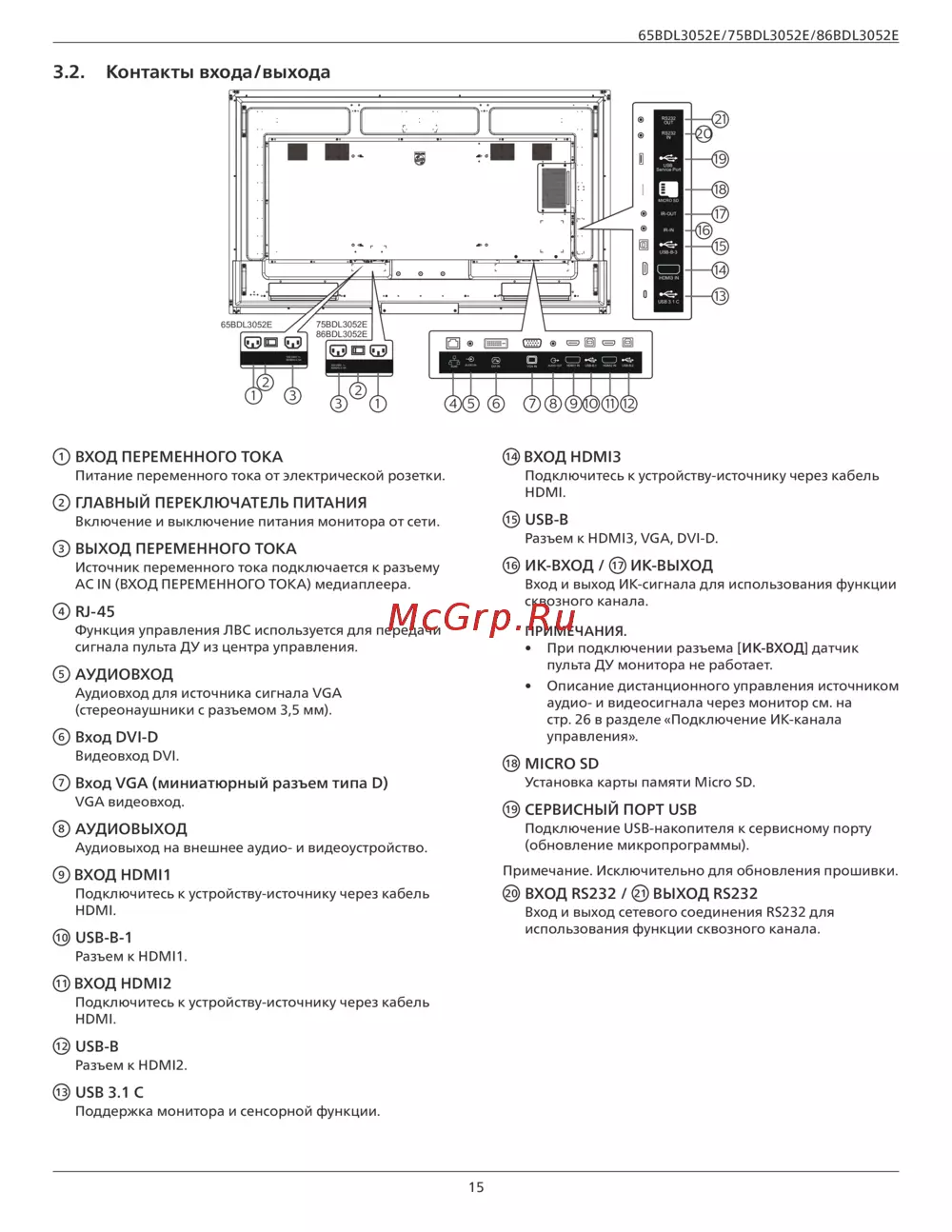 3.2. Контакты входа/выхода