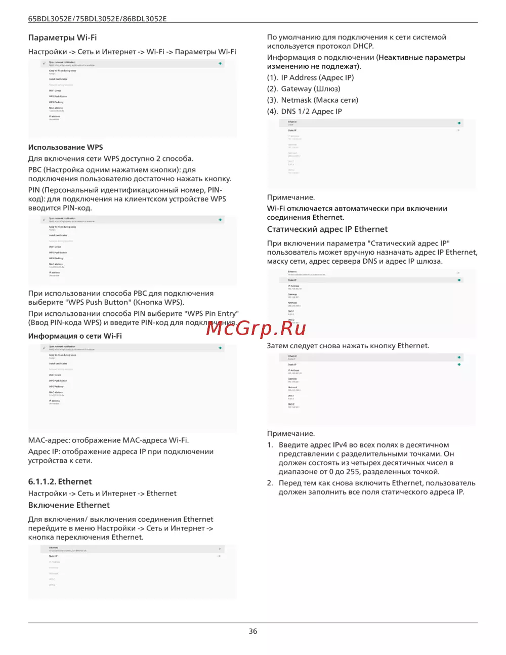 Philips 65BDL3052E/00 [39/70] Статический адрес ip ethernet
