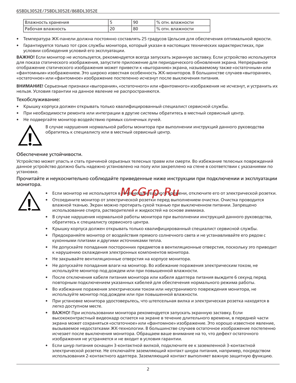 - Меры предосторожности при работе с монитором p.62