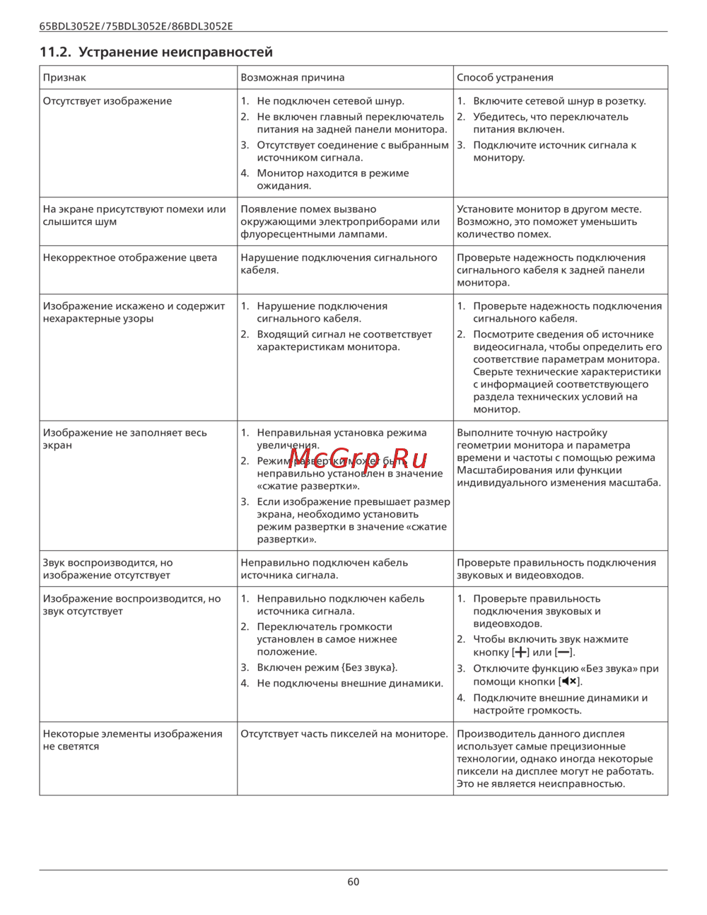 Philips 65BDL3052E/00 [63/70] Устранение неисправностей