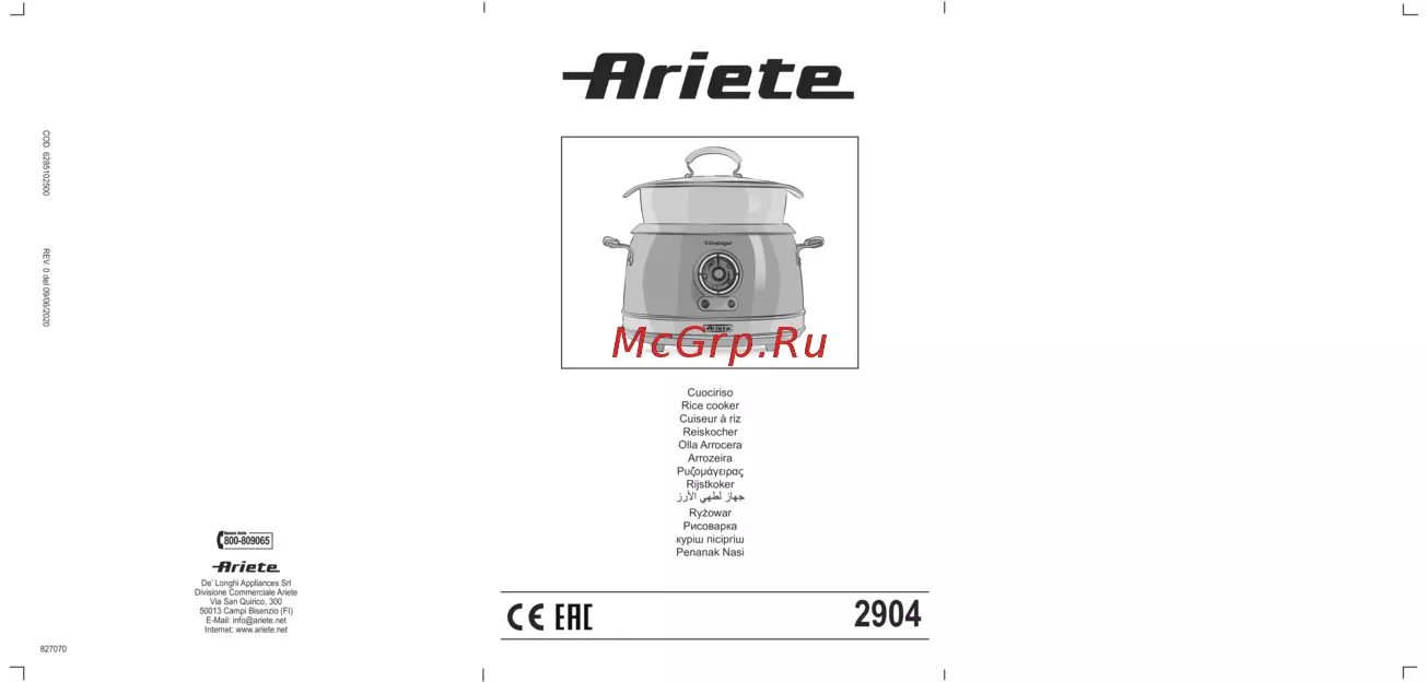 Ariete 2945/00Руководство по эксплуатации -