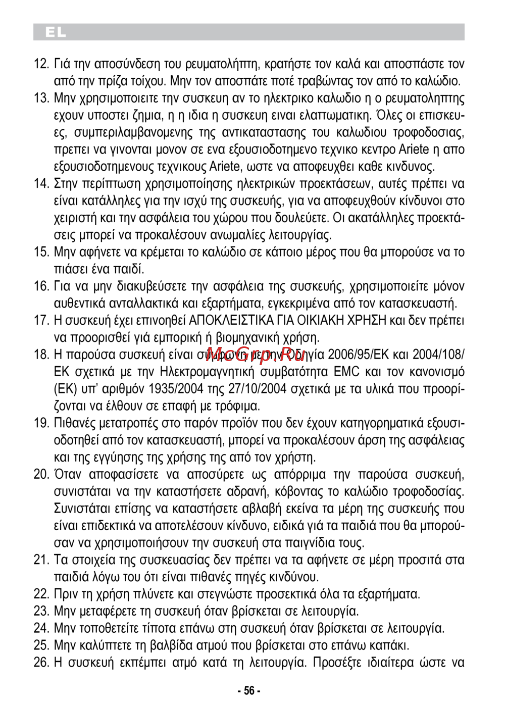 Η συσκευή εκπέμπει ατμό κατά τη λειτουργία. Προσέξτε ιδιαίτερα ώστε να 26.