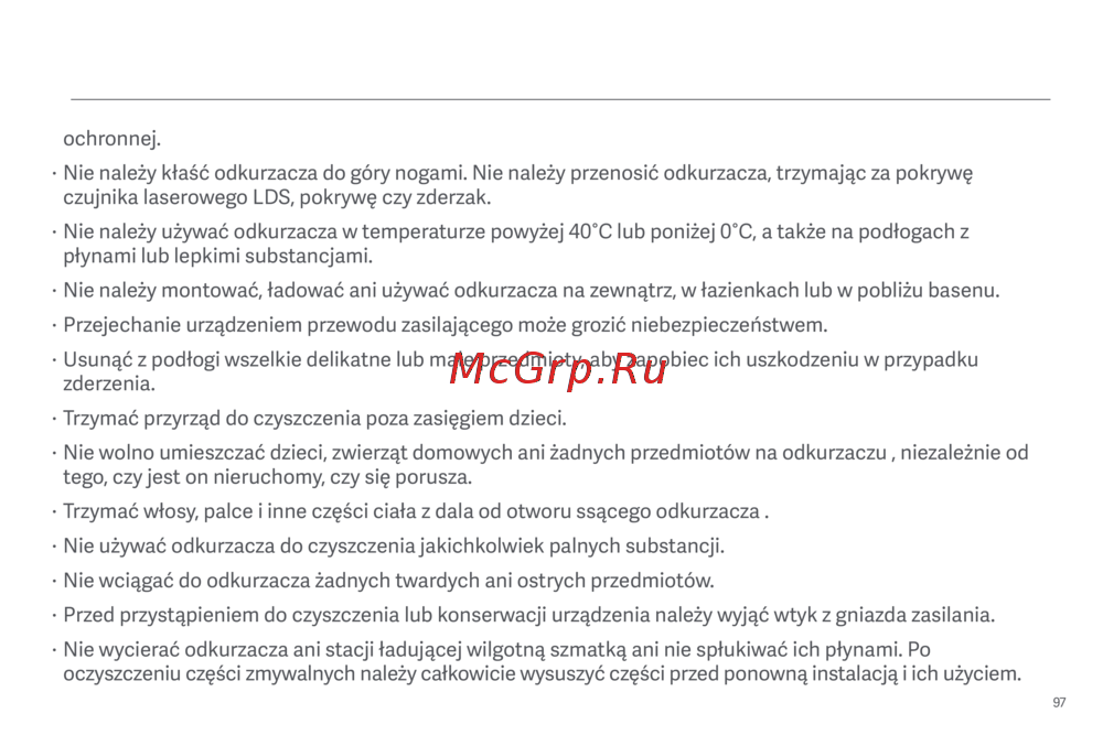 Nie wolno umieszczać dzieci, zwierząt domowych ani żadnych przedmiotów na odkurzaczu , niezależnie od