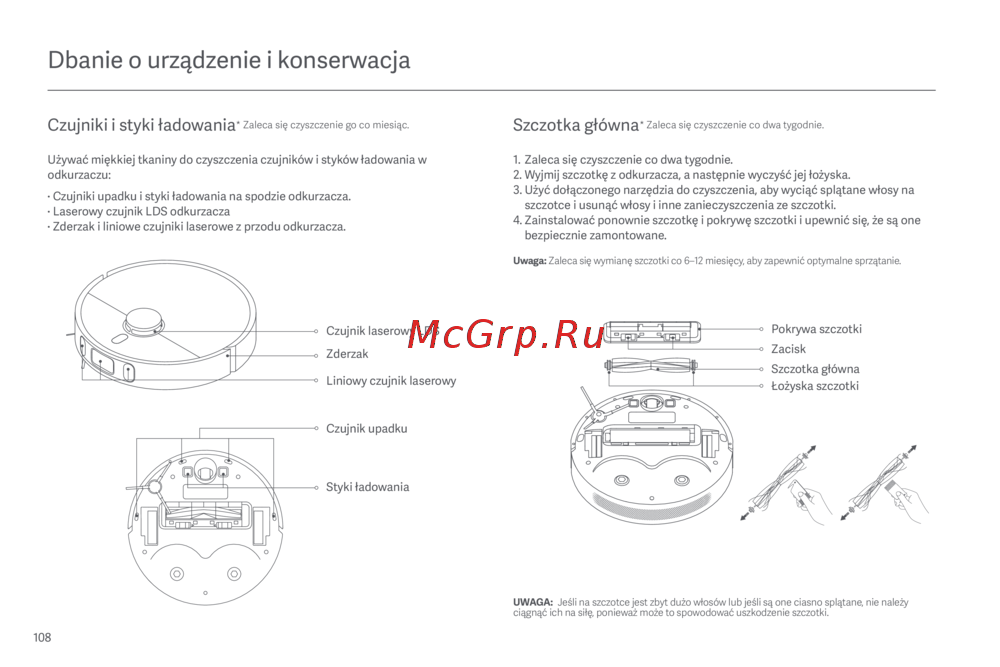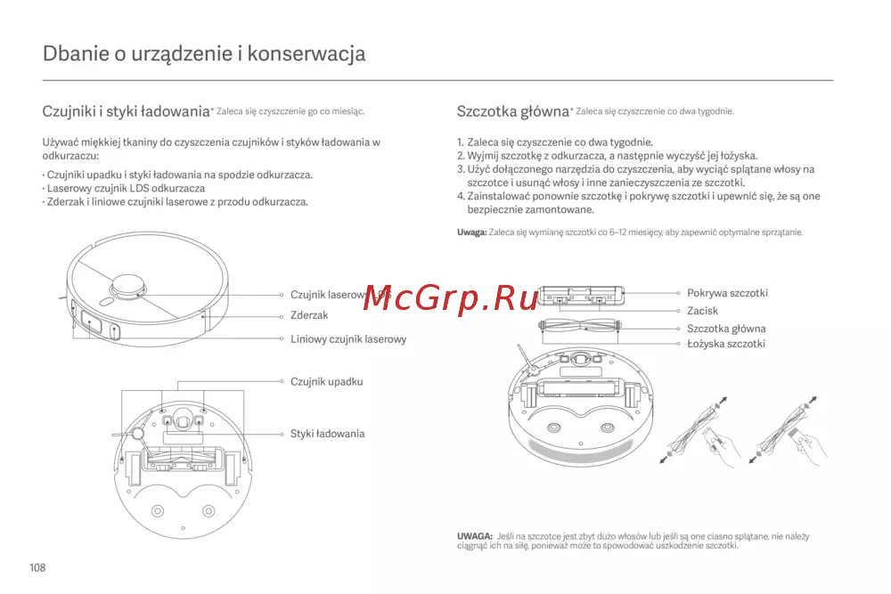 Uwaga: Zaleca się wymianę szczotki co 6–12 miesięcy, aby zapewnić optymalne sprzątanie.