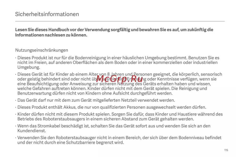 Betriebs des Roboterstaubsaugers in einem sicheren Abstand zum Gerät gehalten werden.