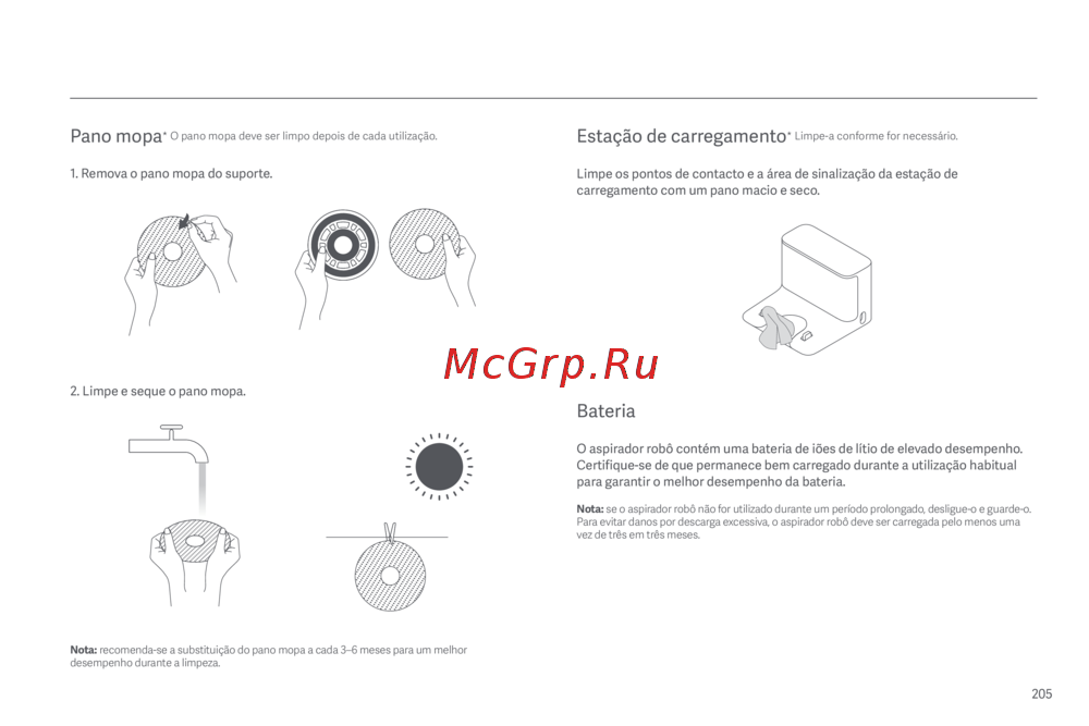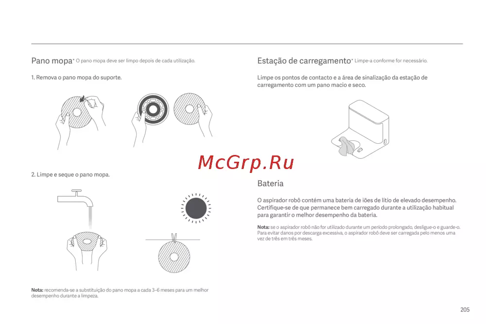 Nota: recomenda-se a substituição do pano mopa a cada 3–6meses para um melhor