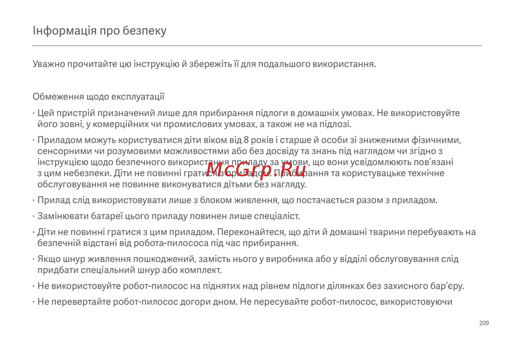 Цей пристрій призначений лише для прибирання підлоги в домашніх умовах. Не використовуйте