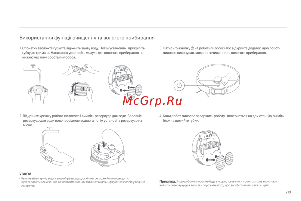 Xiaomi Robot Vacuum S10+ EU — інструкція з використання функції вологого прибирання робота-пилососа [223/309]