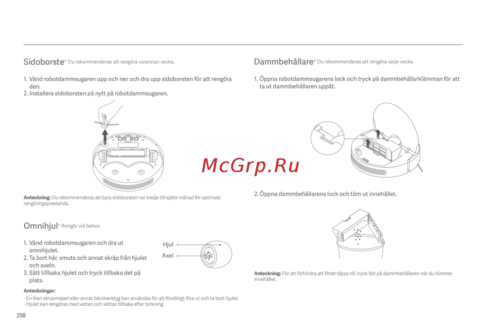 Xiaomi Robot Vacuum S10+ EU — rengöring och underhåll av robotdammsugare för bästa prestanda [302/309]