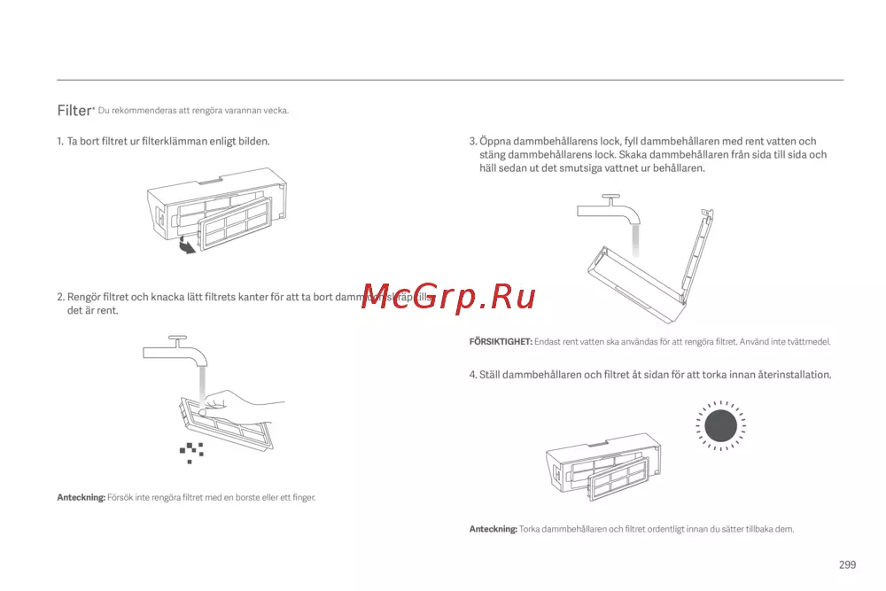 Xiaomi Robot Vacuum S10+ EU — så här rengör du filtret och dammbehållaren på rätt sätt [303/309]