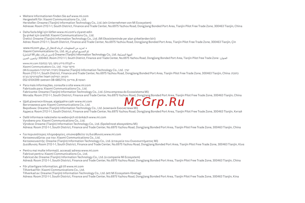 Κατασκευάζεται για την: Xiaomi Communications Co., Ltd.